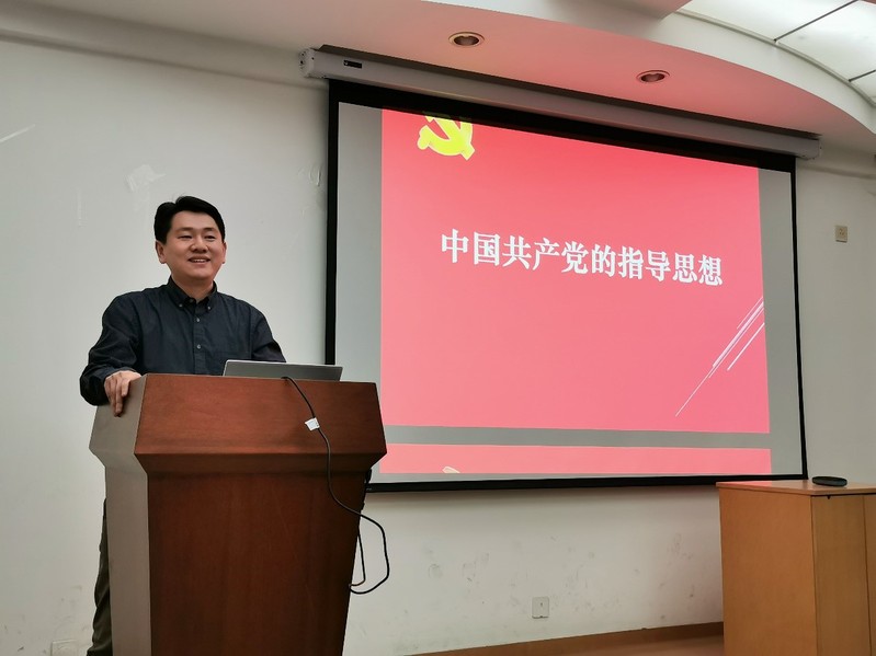 10月22日和29日晚,足球博彩 党委副书记王珏老师分别给19级自科5班和技科4班党章学习小组讲授《中国共产党的指导思想》专题党课,近70名新生参加学习。王珏老师首先从“为什么中国共产党能带领中国走向复兴”这个问题开始,为同学们梳理了党史,指出中国共产党代表了最广大人民的利益,团结了一切可以团结的力量,因此能取得一个又一个胜利。接着,他结合重大历史事件,给大家讲授了党的指导思想,并给大家推荐了具体的书目供大家深入学习。接着,王珏老师从党的先进性、中国的治理方式、党的组织体系等角度给大家分析了“为什么要入党”这个问题。最后,王珏老师介绍了入党的流程,希望大家加强学习,早日成为合格的共产党员。